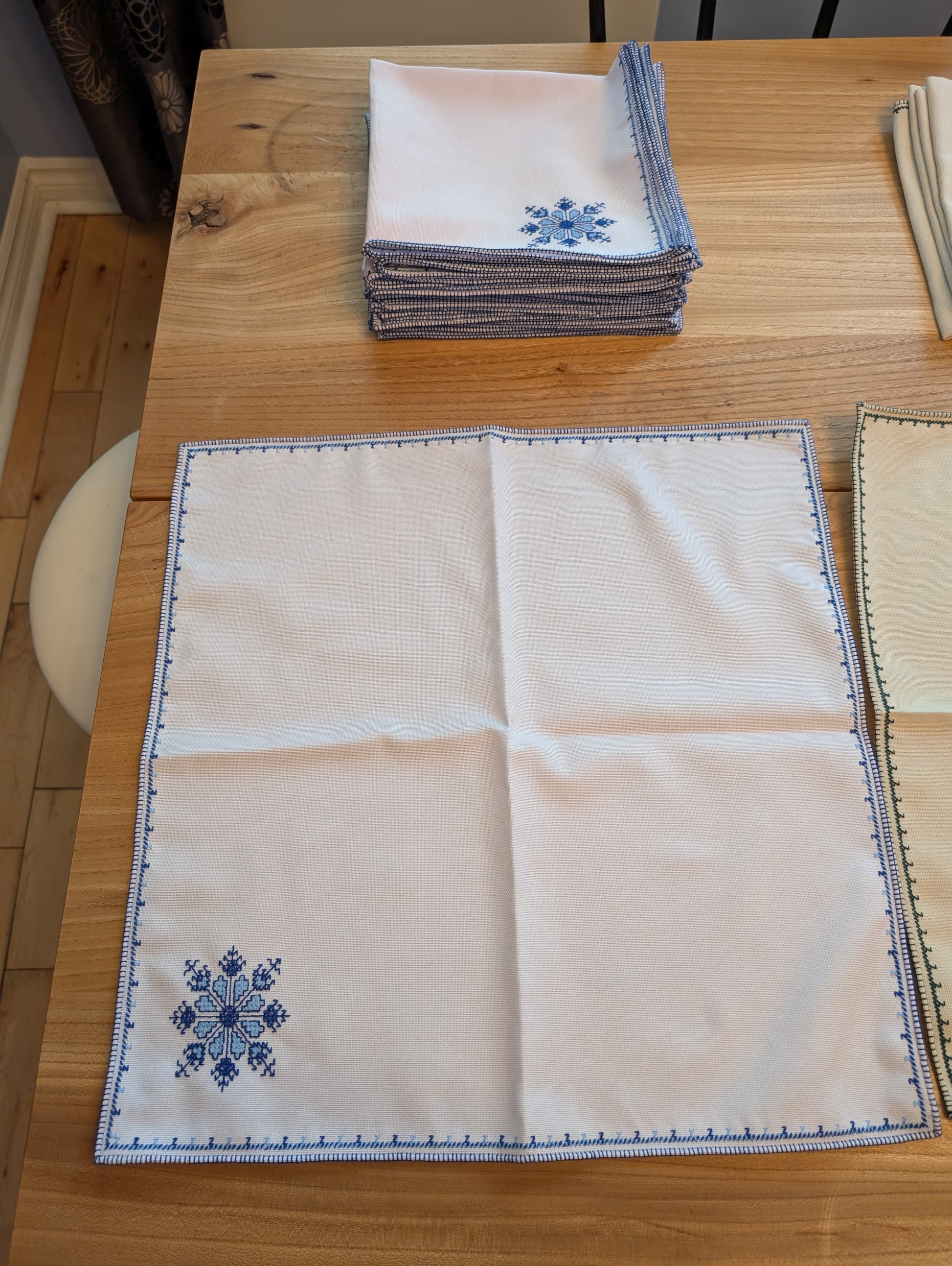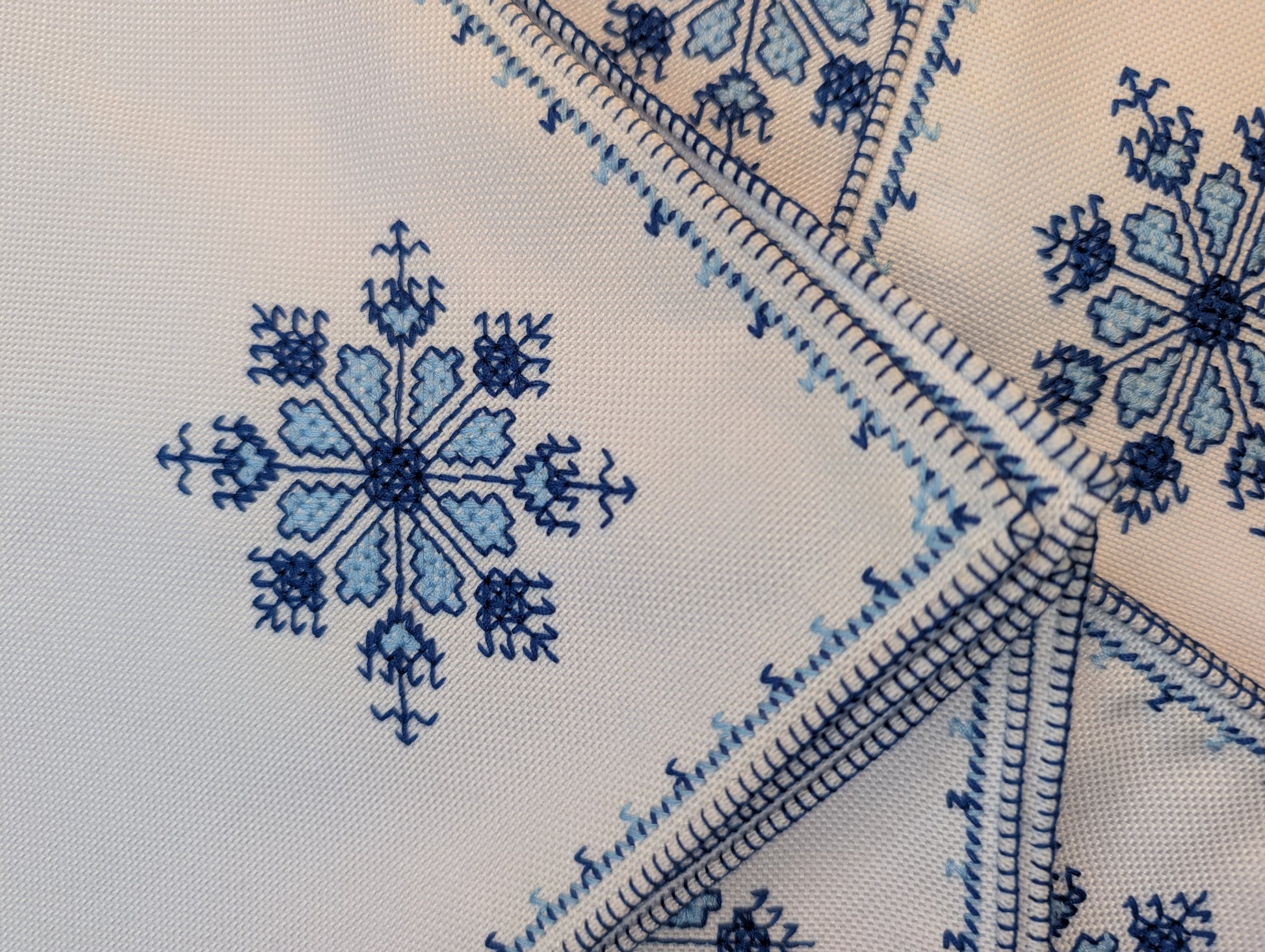 Napkins 6-pack Fassi Blue embroidery on White background / Serviettes en lot de 6, broderie Fassi Bleu sur fond Blanc