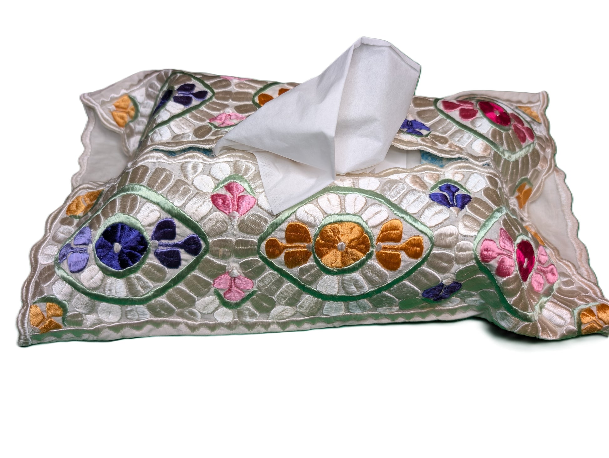 Tissue cover (i.e. Kleenex). Rabat fine embroidery.